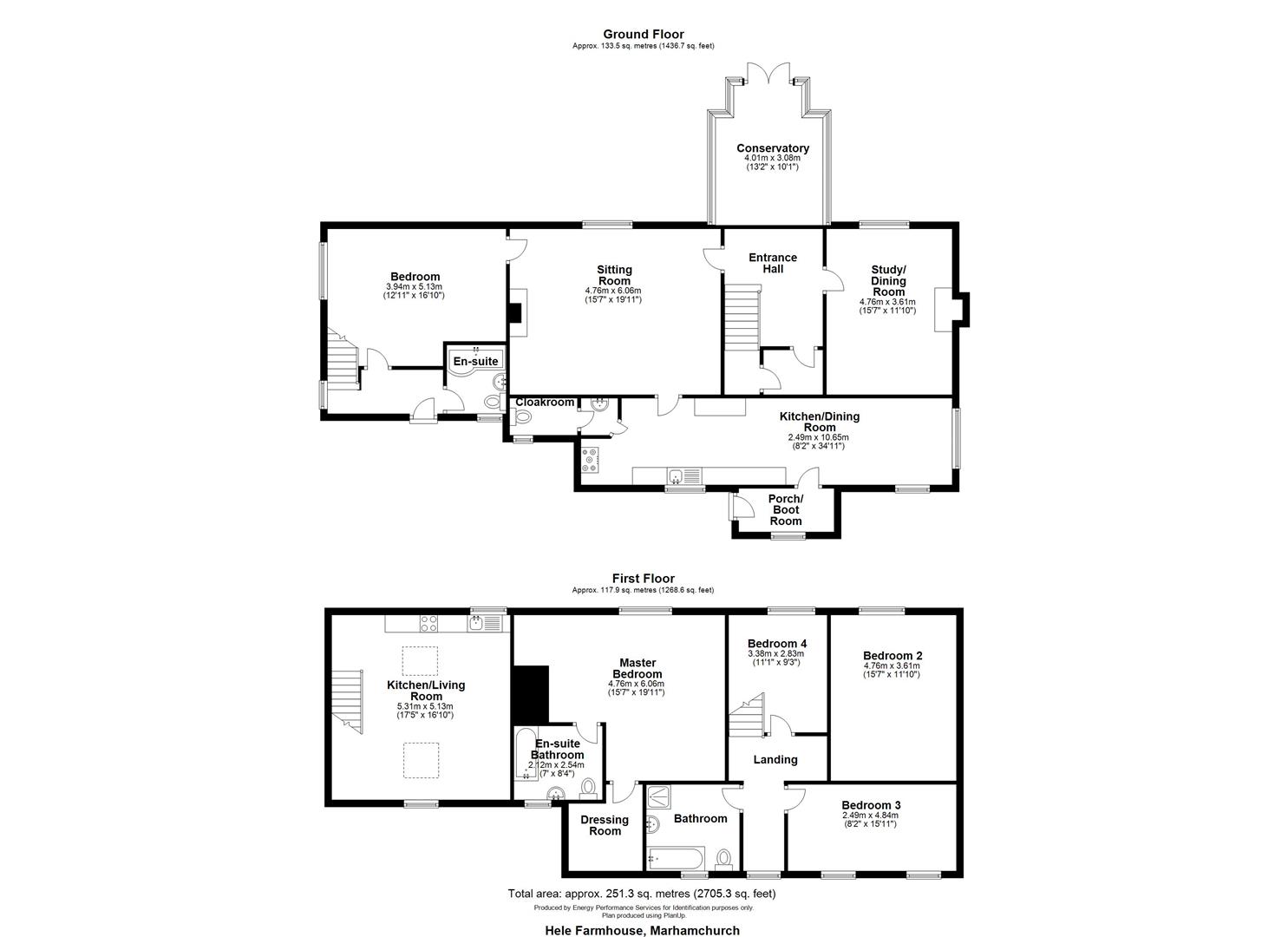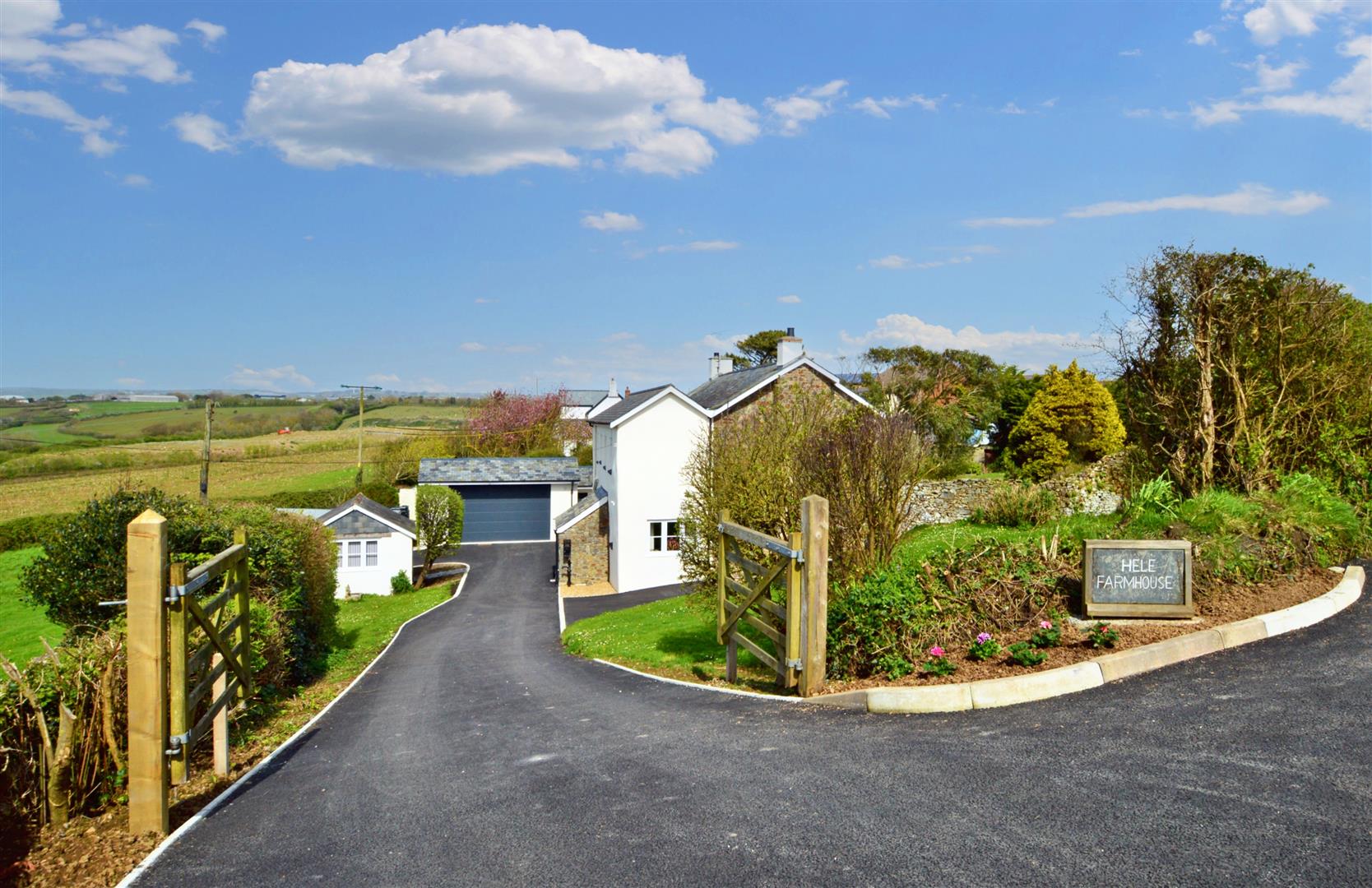 Hele Farmhouse is a substantial, very well presented 4 bedroom country house with an adjoining 1 bedroom self-contained annexe. The house has recently been renovated to include the following, replumbed, rewired, reroofed, new kitchens and bathrooms, externally re-rendered and external drains. The annexe has recently been completed and has yet to have been lived in. The house has been sympathetically renovated and restored, retaining its original character and charm whilst providing an easily maintainable finish. The accommodation benefits from oil fired central heating, wood burning stoves and double glazed windows and briefly comprises: From the front garden French doors open into the conservatory: triple aspect, aluminium frame, internally natural wood clad with double glazed windows and doors, overlooking lawned wall garden, tiled floor, part glazed door leads to, entrance hall: ornate tiled floor, staircase rises to the first floor with doors off to; Study / Dining Room; wooden floor, exposed feature stone wall, fireplace and woodburning stove. Sitting Room; impressive stone inglenook fireplace, woodburning stove and window to the front overlooking the garden. Kitchen / Dining Room; a dual aspect room with windows to the side and rear enjoying far reaching views over the surrounding countryside and farmland, engineered Oak flooring, Kitchen; Fitted wall and base units under solid Oak worksurfaces, inset fridge / freezer, larder cupboards, dishwasher, 1 ½ bowl ceramic sink and draining board and Smeg electric range cooker with an induction hob inset into the inglenook fireplace with a feature bread oven. Cloakroom; Wash hand basin and w/c. Porch/Boot Room; door to the rear. On the First Floor: Landing; Master Bedroom; Window overlooking the front garden, feature fireplace (disused), Walk in Wardrobe Dressing Room; En-Suite Bathroom; bath, wash hand basin and w/c. Bedroom 4; double room, window overlooking the front garden. Bedroom 2; double room, window overlooking the front garden. Family Bathroom; Double ended bath, w/c, wash hand basin and shower enclosure, heated towel rail. Bedroom 3; double room, windows to the rear enjoying far reaching views over the surrounding countryside towards the coast.