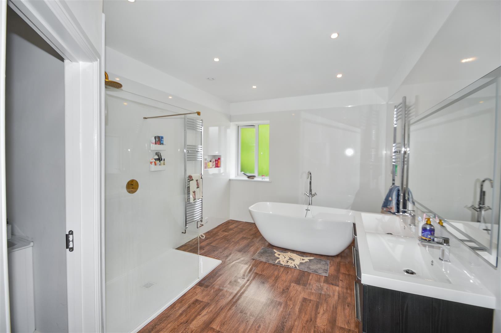 On the second floor; A double bedroom, window to the side overlooking the garden and surrounding countryside. En suite; wash basin, w/c, heated towel rail, shower enclosure with full body jets.
