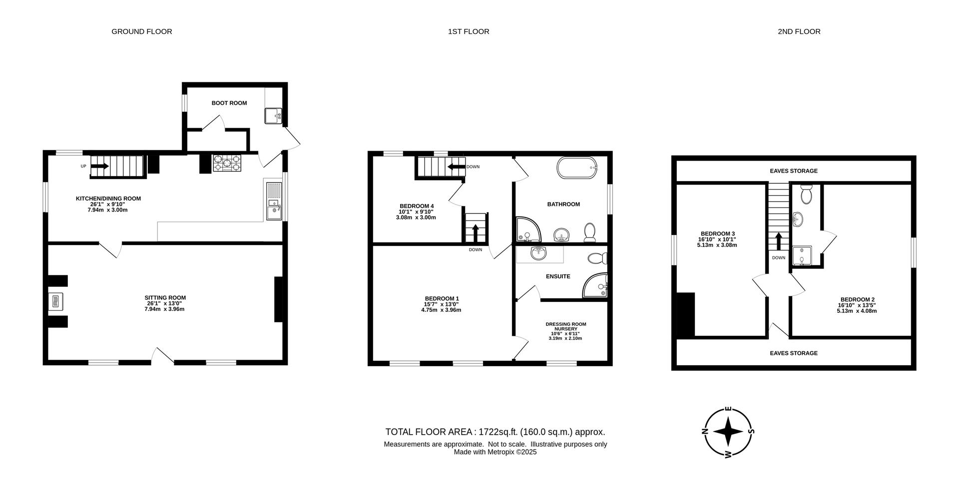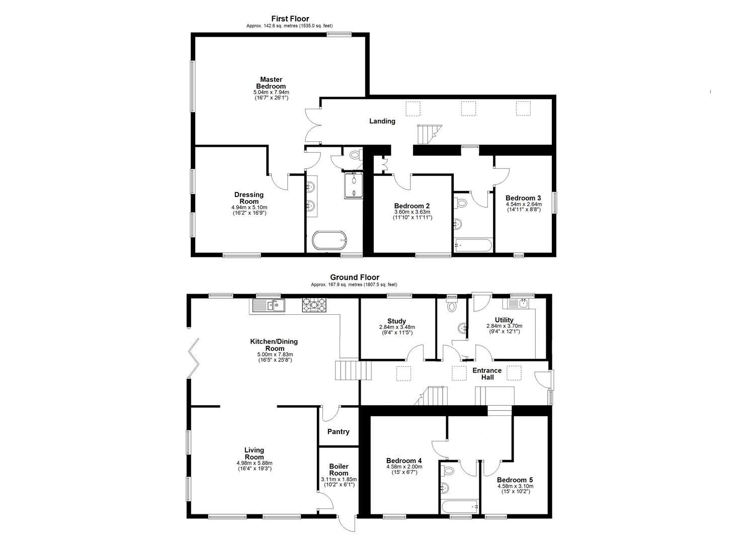 On the First Floor; Landing with staircase to the second floor. Family Bathroom; double ended bath, shower enclosure, vanity unit with wash handbasin, w/c, heated towel rail. Bedroom with window to the rear and Master suit, with a generous double bedroom, dressing room / nursery window to front. En suite; shower, w/c, vanity unit, with wash hand basin.
