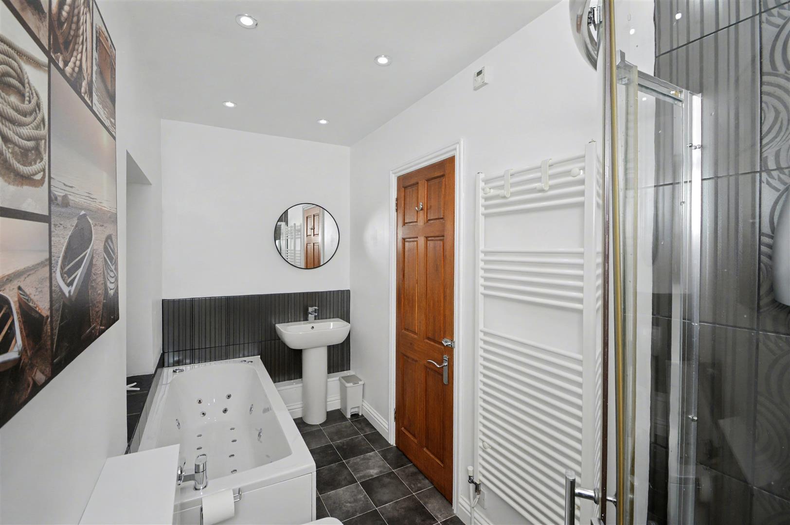 Bedroom 2; double bedroom, built in wardrobes. Bathroom; bath with shower over, w/c, wash basin, heated towel rail. On the First Floor: Living room; fitted kitchen wall and base units, cooker and electric hob with extractor hood above. Dining room / Bedroom; fitted wardrobe / cupboard.