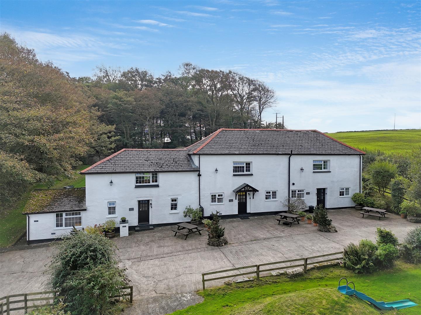 The property is approached from the road over an owned and shared entrance drive with the entrance to Bennetts Court and holiday cottages located at the end, separate gated entrance to the cottages and one to the courtyard at the rear of the house providing ample parking.