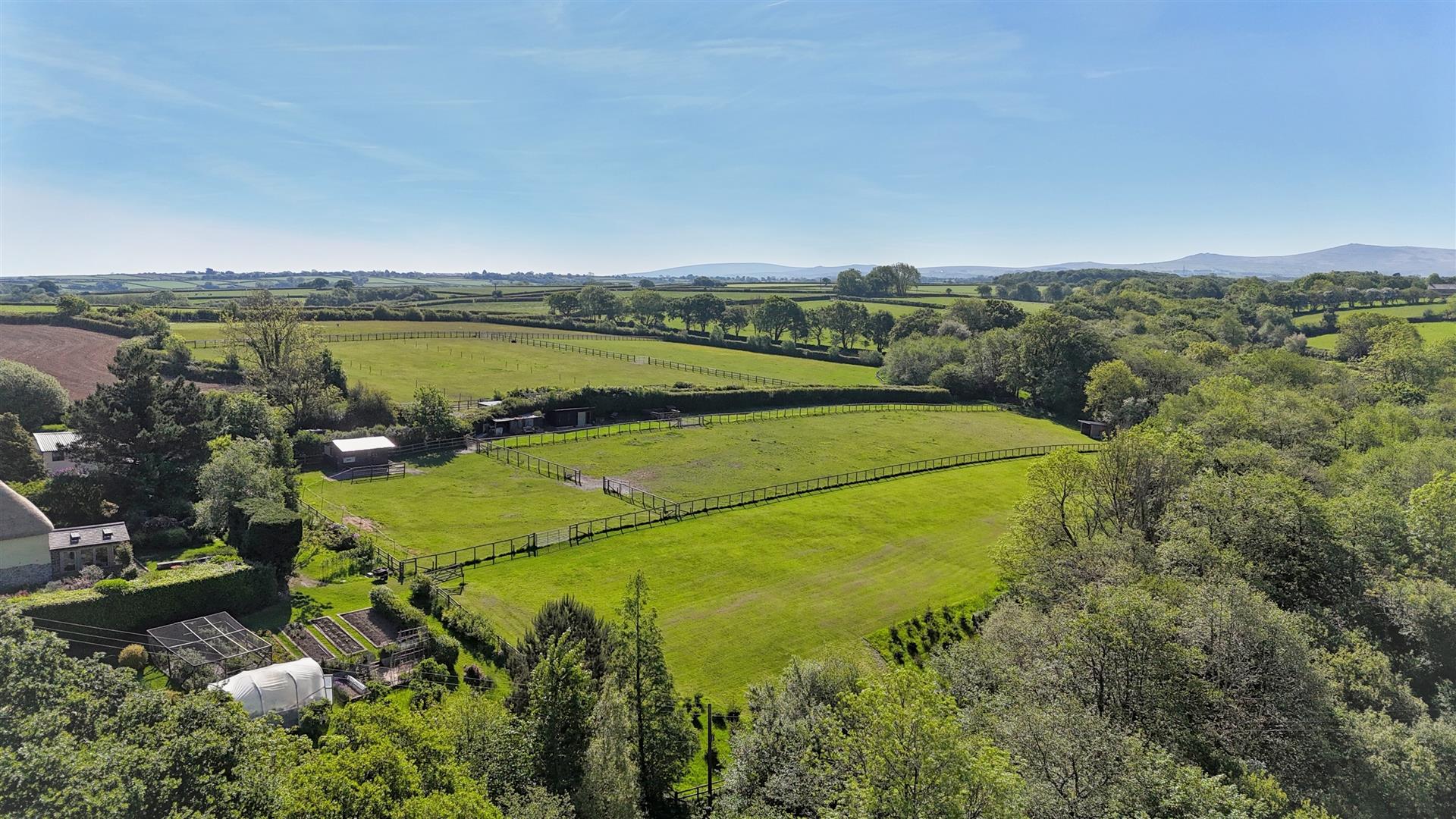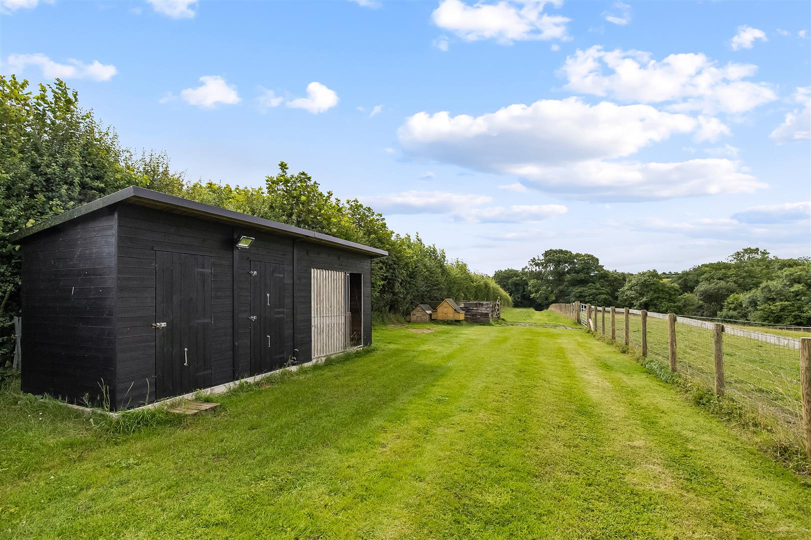 On the far, southern boundary the paddocks are complemented by 1 acre of amenity woodland of mature native hardwood trees. Along the western boundary is a 0.5 acre strip of woodland and a stream.